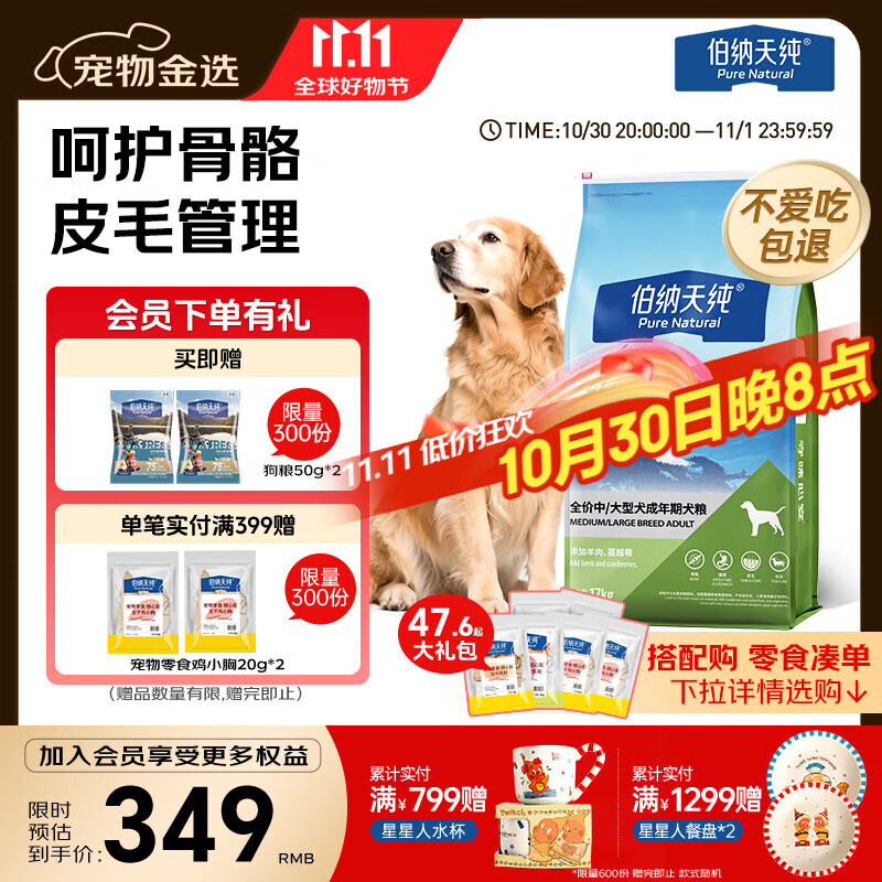伯纳天纯狗粮中大型犬全价成年犬粮17kg羊肉蔓越莓味
