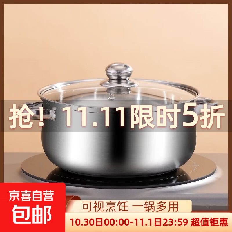 【加高】不锈钢汤锅加厚家用加高煲汤大容量煮粥炖锅 小号【18cm】汤锅+玻璃盖
