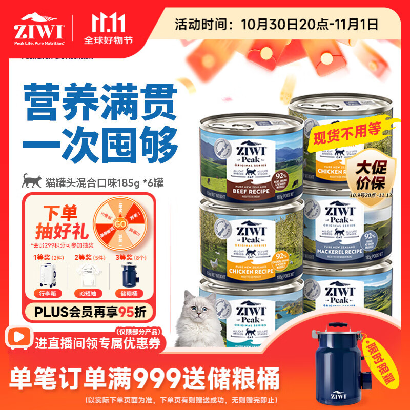 滋益巅峰(ZIWI)猫主食罐头185g*6罐混合味主食湿粮成猫幼猫通用新西兰原装进口