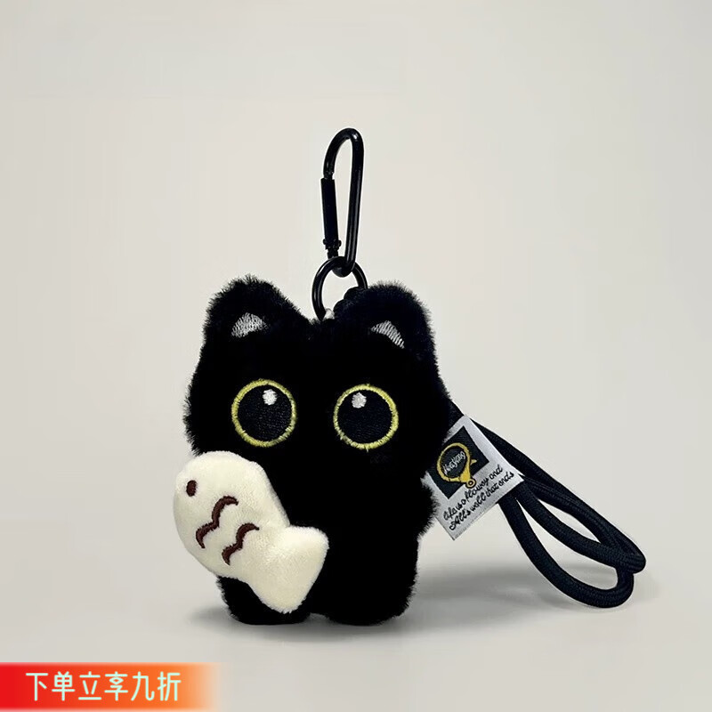 科纳达(KENADA)可爱呆萌抱小鱼大眼黑猫挂件毛绒玩偶情侣包挂件创意小黑猫钥匙扣 抱鱼大眼黑猫+珠链