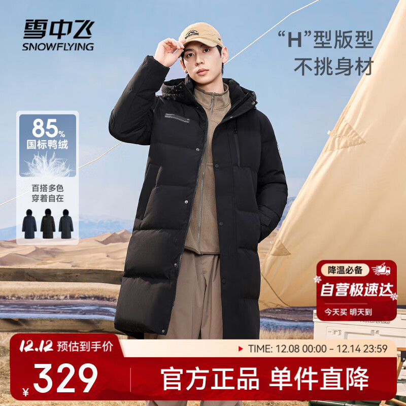 雪中飞秋冬东方简奢风时尚休闲舒适廓形男士“H”版型印花立领连帽羽绒