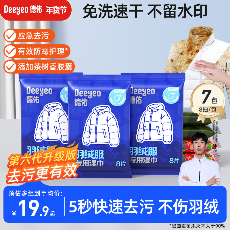 德佑【冠军推荐】羽绒服清洁湿巾8片*7包 去渍免洗去污湿纸巾干洗去污