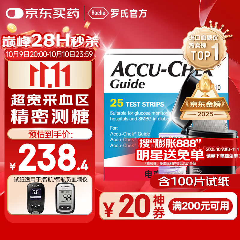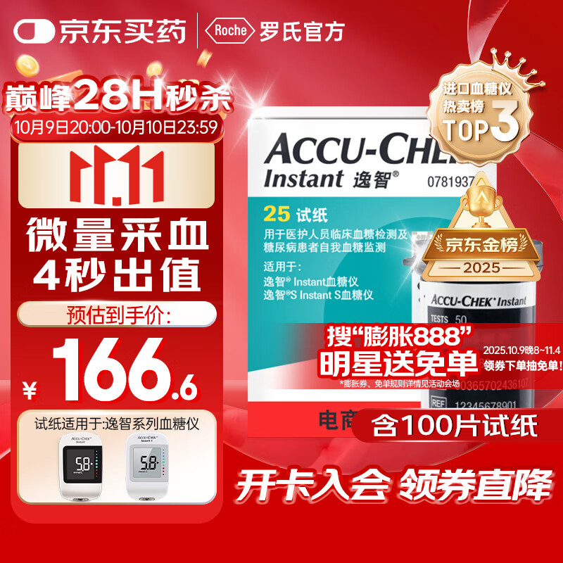 罗氏血糖仪试纸医用级高精准逸智检测试纸(100片试纸+100支采血针)