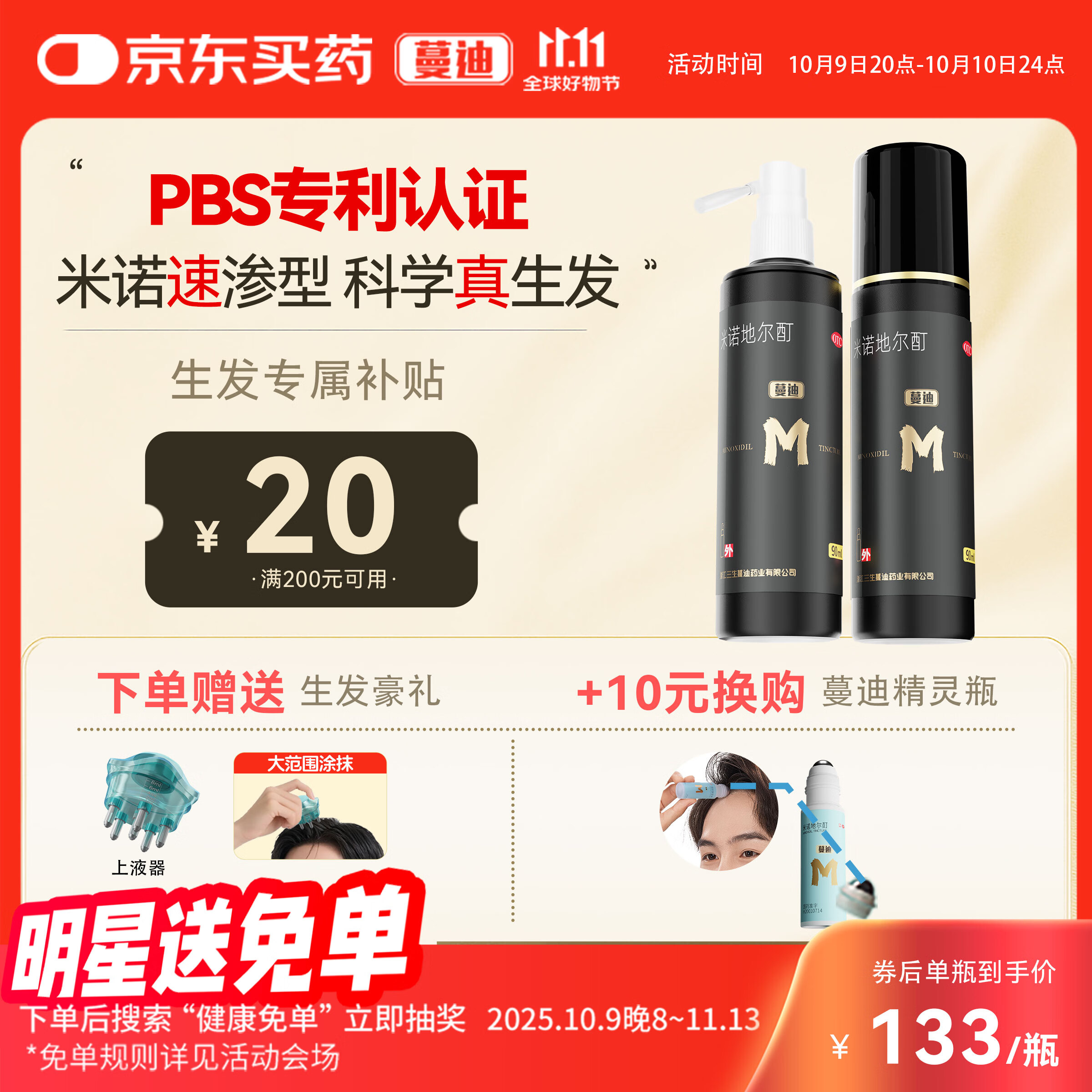蔓迪蔓迪生发喷雾5%米诺地尔酊90ml*2瓶男士专用治脱发育发斑秃原液搽剂曼迪京东自营米洛地尔生发剂