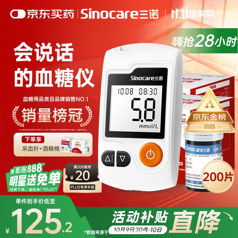 三诺GA-3血糖仪家用高精准测血糖仪器医用级检测仪200支试纸套装