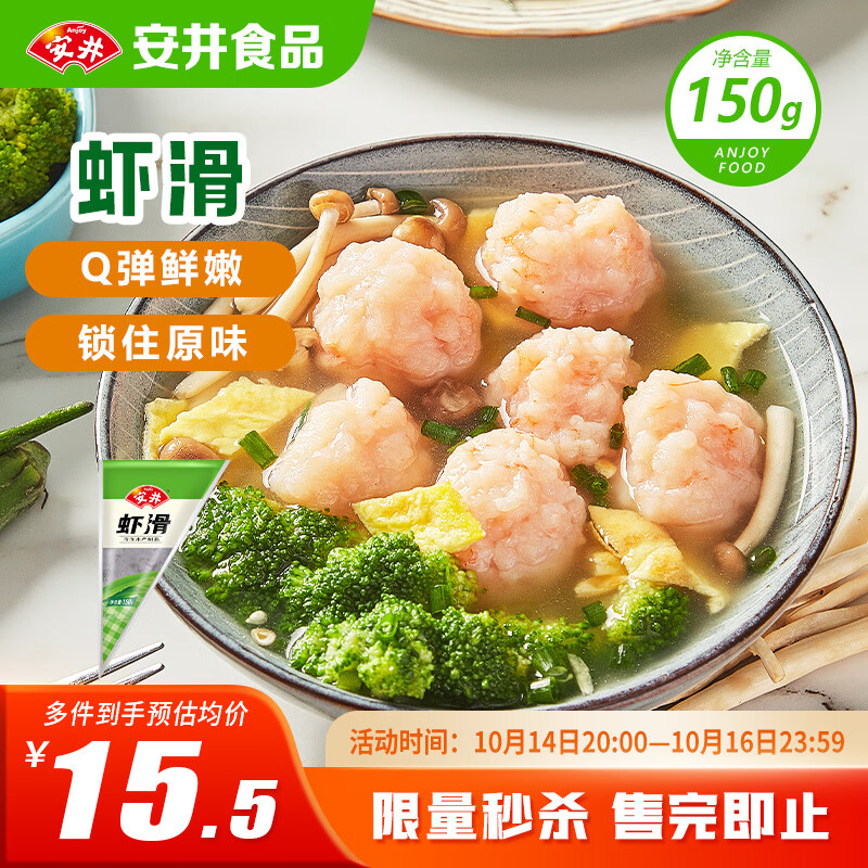 安井 虾滑 150g/袋 虾仁含量80% 火锅麻辣烫食材 速食熟食海鲜水产
