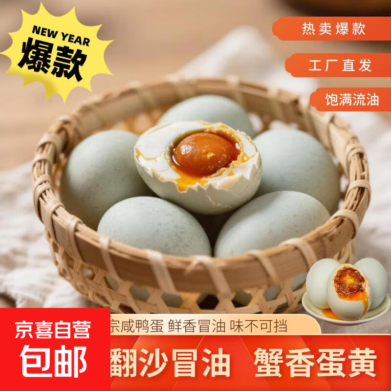 新鲜咸鸭蛋50g/枚流油红心即食早餐生鲜超市批发咸蛋黄-工厂 50g【10枚】