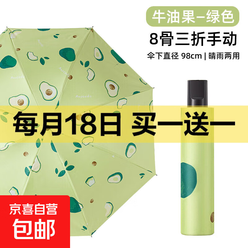 水果甜心折叠雨伞两用结实耐用晴雨伞太阳伞防晒学生黑胶遮阳伞 手动升级防晒-牛油果8骨