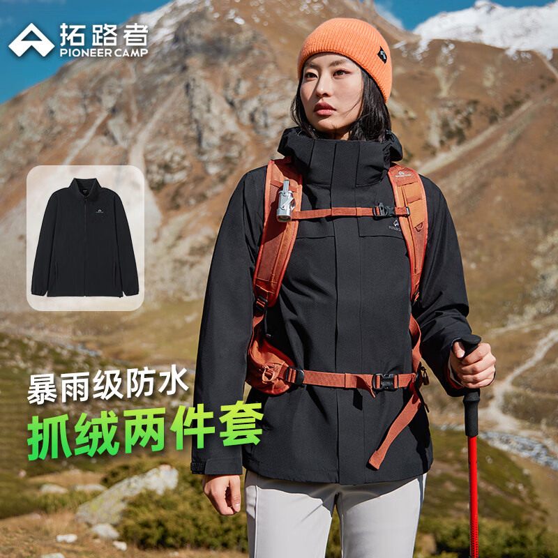 拓路者朱雀冲锋衣女三合一抓绒衣保暖外套硬壳户外登山服防水防风透气