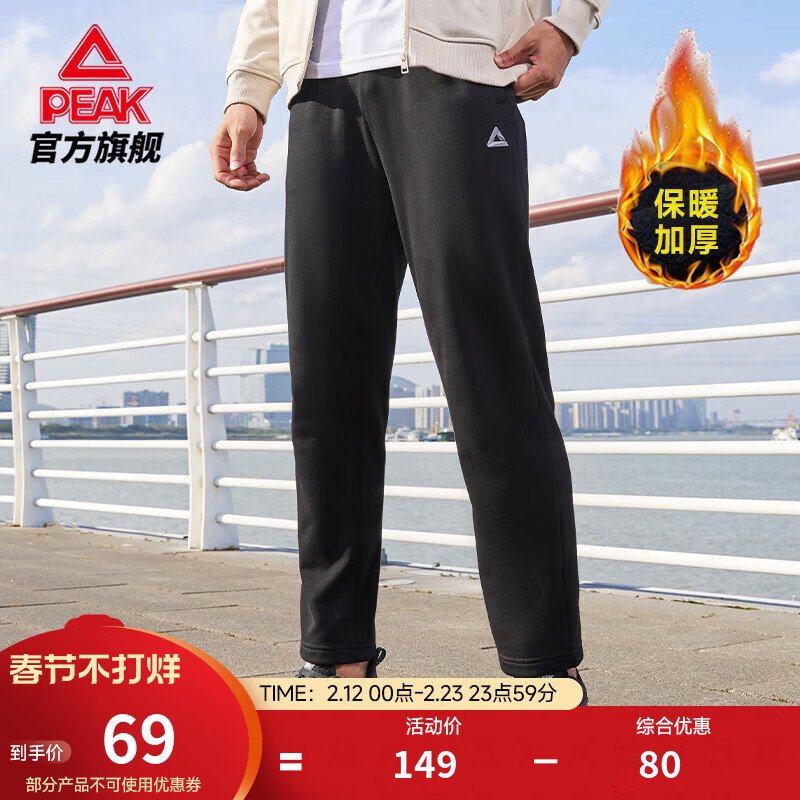 匹克针织运动裤男冬季跑步加绒梭织长裤休闲裤运动服男直筒裤束脚裤子 【秋冬加绒直筒裤4011】黑色 XL (180)