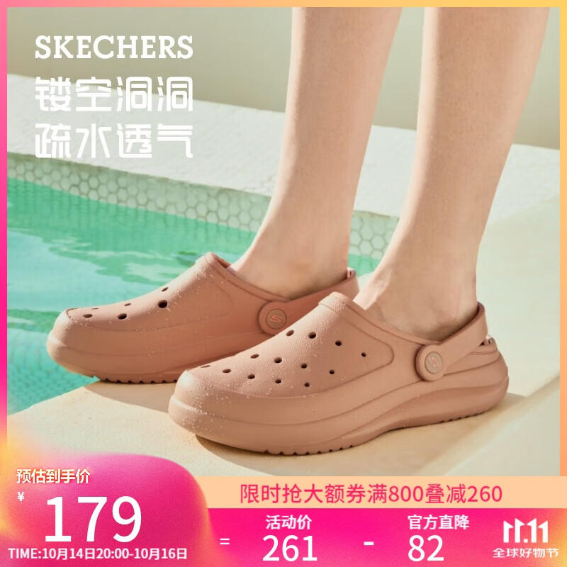 斯凯奇(Skechers)洞洞鞋女士秋季外穿包头泡泡鞋厚底软底凉拖鞋休闲鞋111514