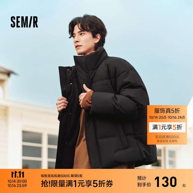 森马(Semir)羽绒服男冬时尚撞色印花情侣面包服厚款外套潮 黑色(灰鸭绒)90001 M
