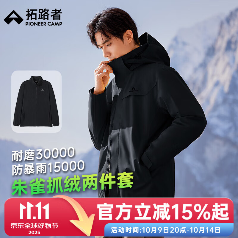 拓路者林更新同款朱雀冲锋衣男三合一抓绒内胆户外防水防风徒步登山服