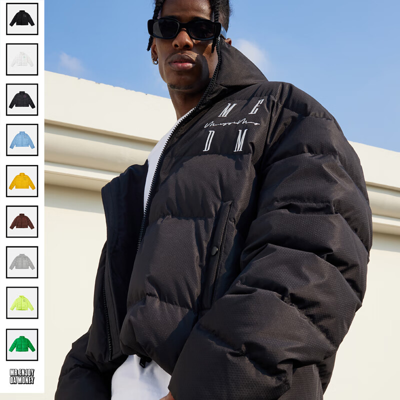 MEDM【侯明昊/王鹤棣同款】国潮牌字母刺绣立领羽绒服男冬季休闲外套 黑色(现货) XL