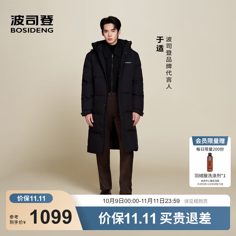 波司登(BOSIDENG)于适同款25新款羽绒服男女同款情侣长款宽松舒适连帽面包服外套 黑色|8056-店长推荐色 XL 175/96A 体重约140-155斤