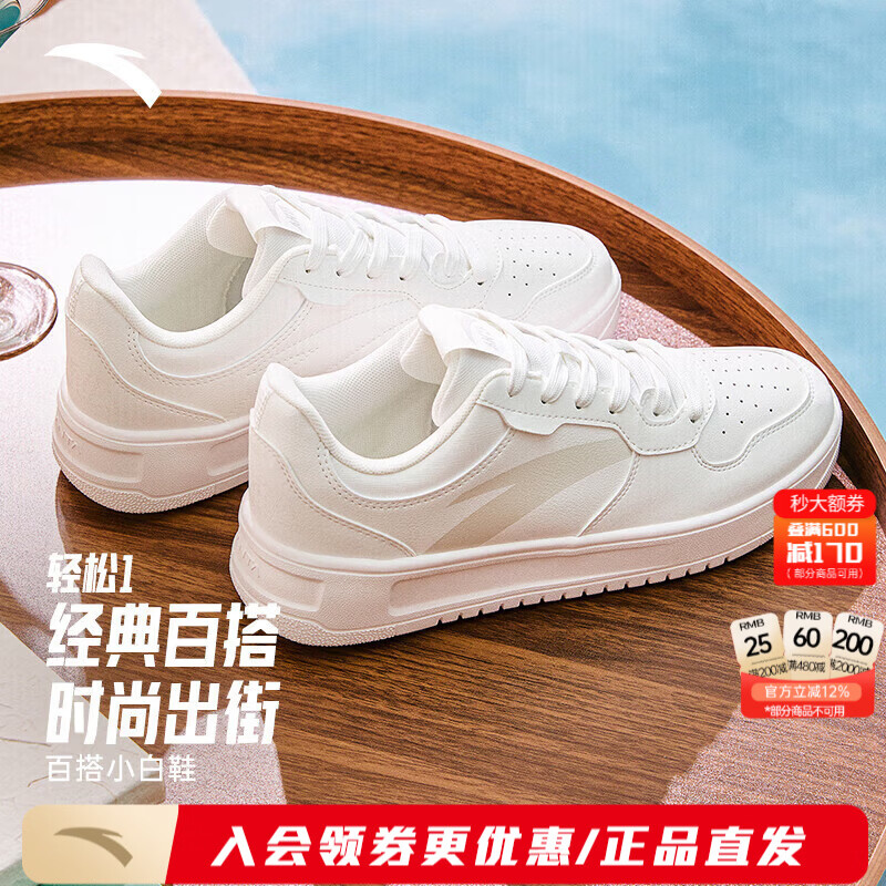 安踏轻松丨男板鞋男鞋冬季软底小白鞋休闲鞋百搭通勤时尚运动休闲鞋 纸莎白-2 40