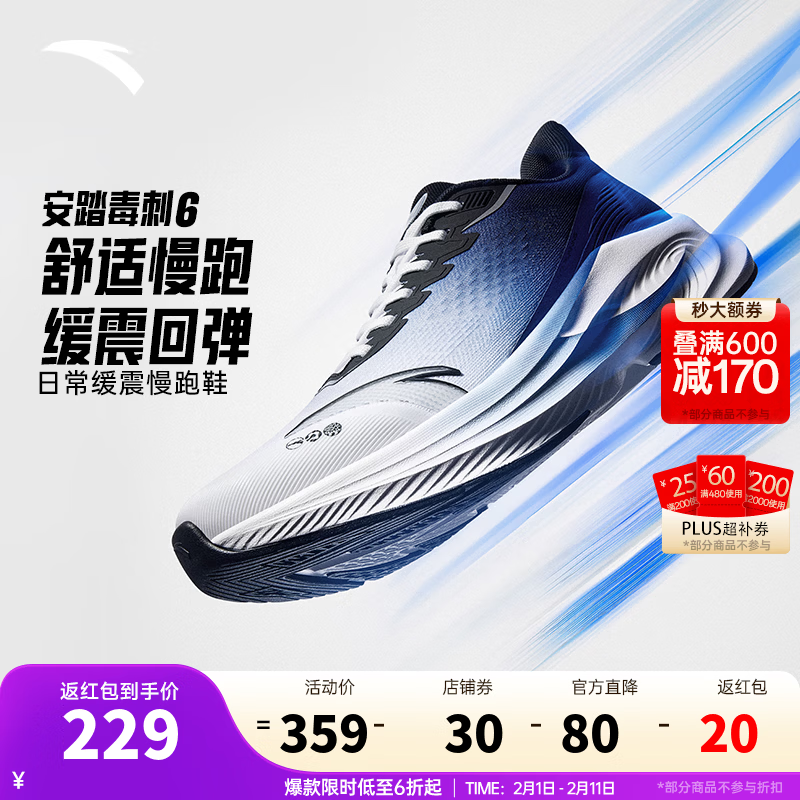 安踏毒刺6丨运动鞋男鞋缓震回弹专业跑步鞋子男耐磨中考体考训练鞋男 【毒刺6】沙粒灰/信号蓝/黑-4 40.5