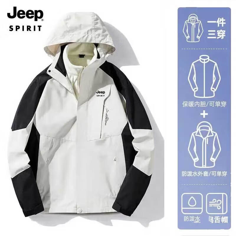 JEEP SPIRIT吉普冲锋衣男女三合一季新款加绒外套夹克户外防风滑雪登山服 冲锋衣女白色/两件套 L