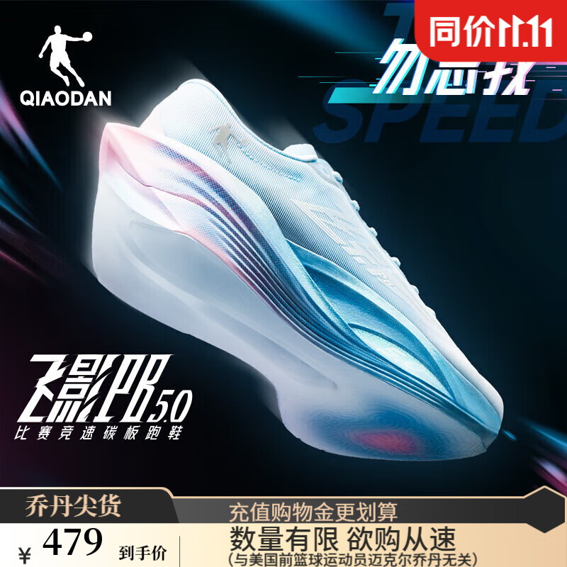 乔丹[FLY同款]飞影PB5.0马拉松竞速跑步鞋碳板跑鞋运动鞋男夏季新 卷云蓝/樱花粉 -勿忘我 42