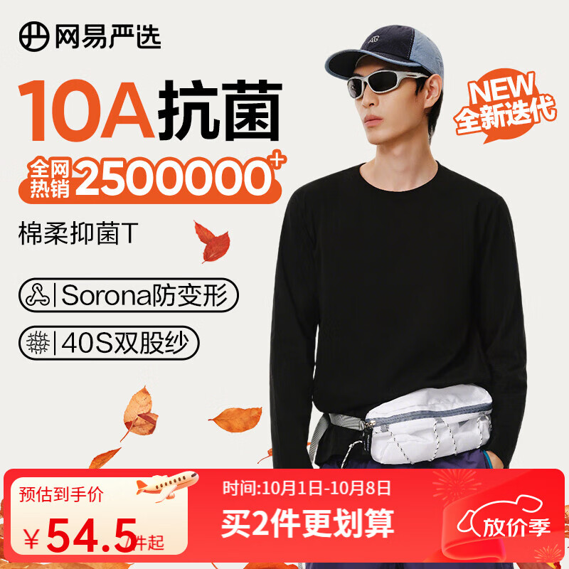 网易严选 200g重磅棉7A抑菌基础长袖T恤纯棉内搭外穿打底衫 A款10A抑菌升级-本白色 L