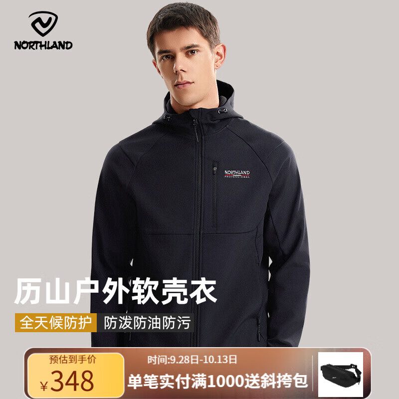 诺诗兰25秋冬软壳外套男士三防徒步户外保暖登山夹克风雪外套 纯黑色-70E男 175