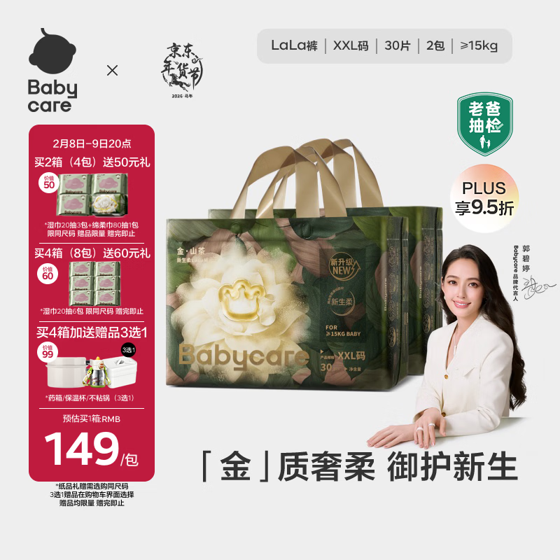 babycare金山茶花拉拉裤XXL30片*2包(>15kg)婴儿尿不湿超薄透气花苞裤