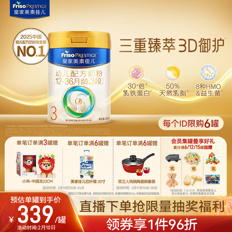 美素佳儿(Friso)皇家幼儿配方奶粉 3段(1-3岁幼儿适用)800g 乳铁蛋白 (新国标)