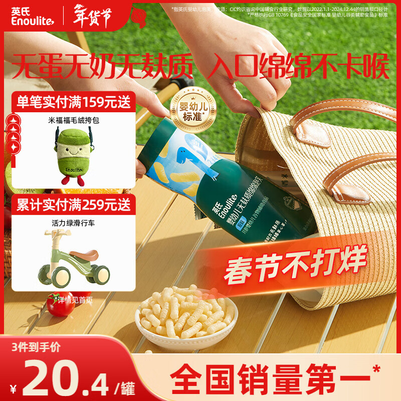 英氏(Engnice)婴幼儿无麸质绵绵泡芙婴儿宝宝零食无蛋奶添加健康零食易溶18g
