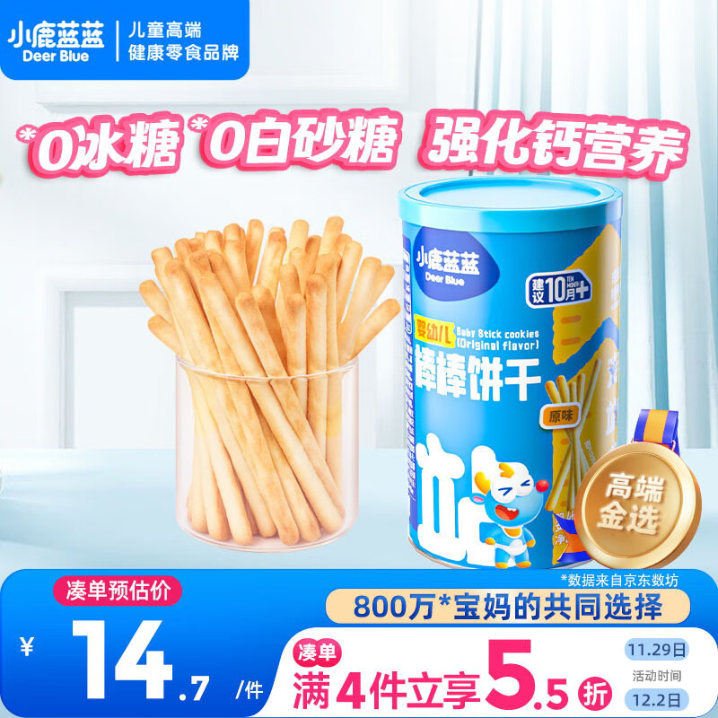 小鹿蓝蓝 婴幼儿炭烧棒磨牙棒饼干宝宝儿童零食手指饼干130g