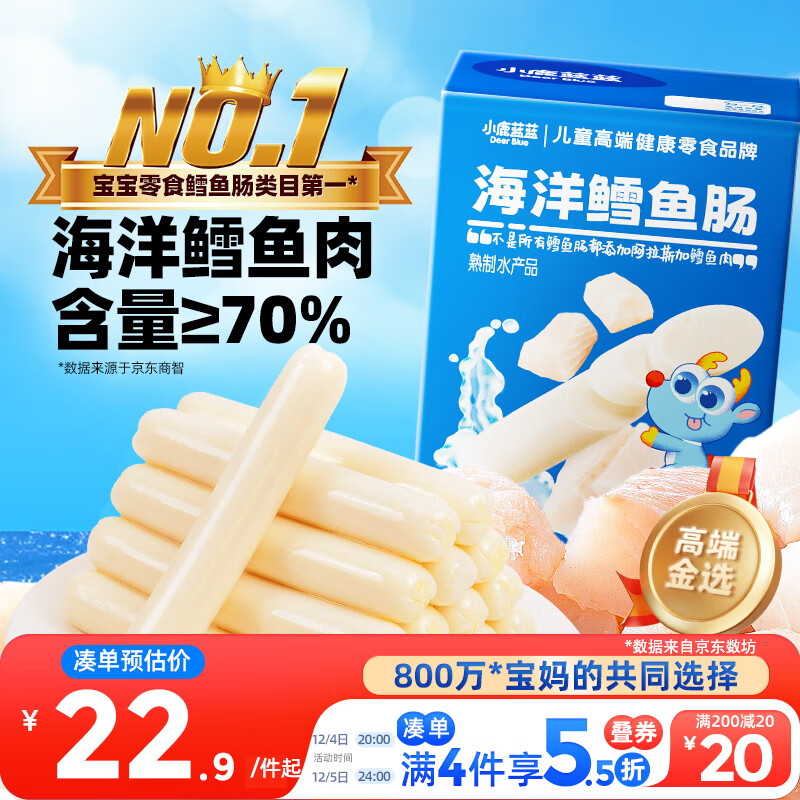小鹿蓝蓝海洋无污染鳕鱼肠 宝宝儿童零食解馋零食益生元鳕鱼肉肠300g