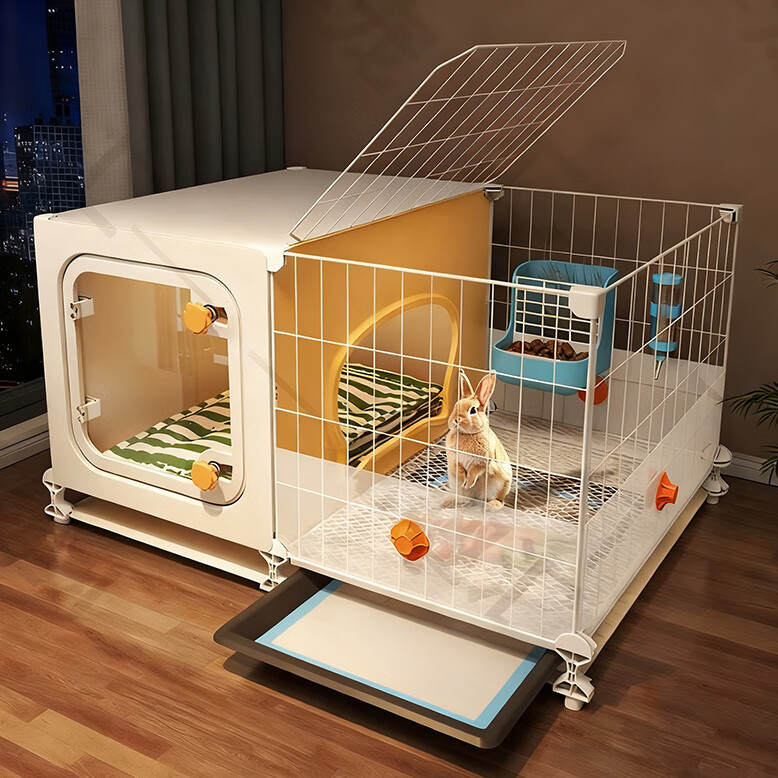 王多喵兔笼子减少喷尿外溅厕所一体家用大号室内带卧室荷兰猪豚鼠笼子 半封闭暖窝-中号-立体防喷尿围挡