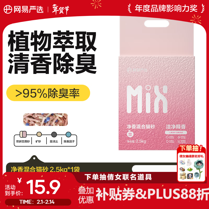 网易严选净香猫砂 净味除臭清新白桃吸水高效结团 瞬吸无尘猫砂 猫咪用品 【清新白桃】净香猫砂2.5kg
