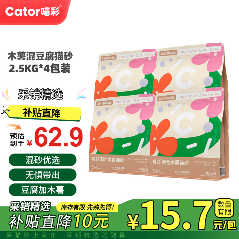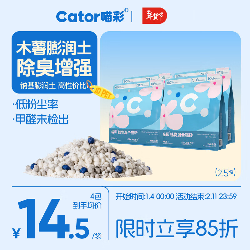 喵彩木薯膨润土混合猫砂除臭强吸水不沾底 4包【20斤】囤货更优惠