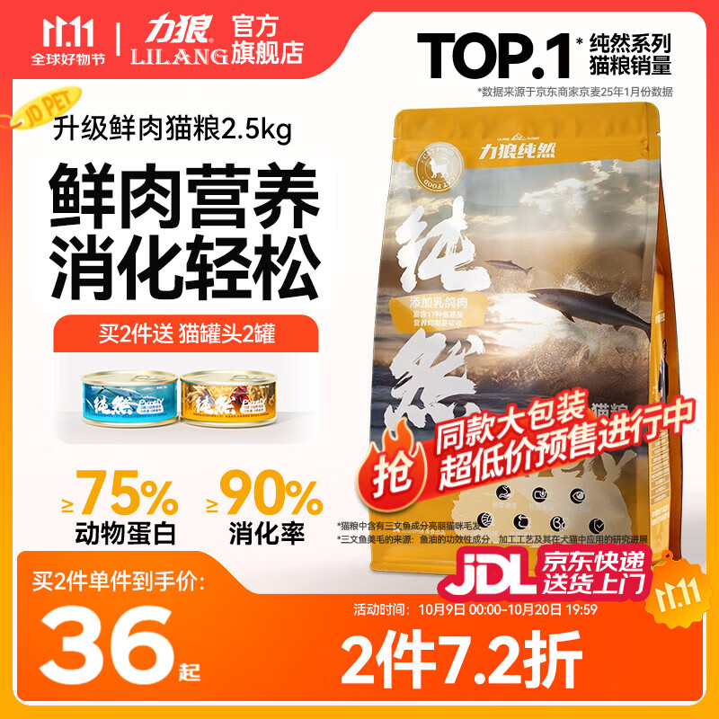 力狼猫粮 成猫幼猫通用型天然粮 【经典升级2.0】鸡鱼+乳鸽2.5kg