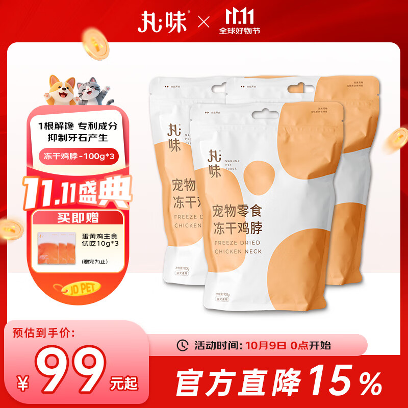 丸味猫零食冻干鸡脖100g*3 磨牙猫咪狗狗零食幼猫成猫主粮伴侣