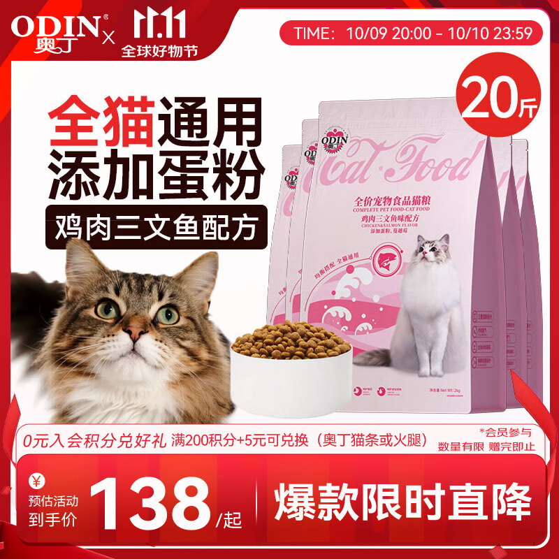 奥丁 ODIN 猫粮 幼猫猫粮成猫美短全价天然鱼肉味猫粮10kg20斤