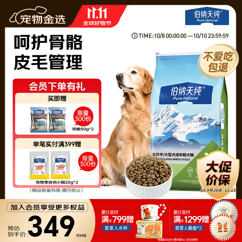 伯纳天纯狗粮中大型犬全价成年犬粮17kg羊肉蔓越莓味