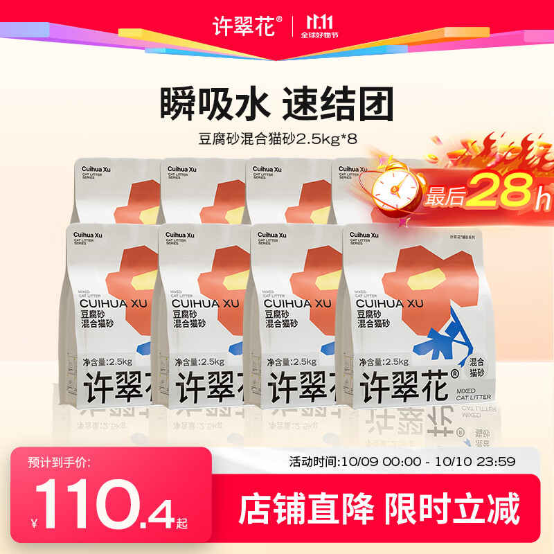 许翠花 豆腐混合猫砂 不易粘底易结团木薯植物强吸水除臭 【囤货装】豆腐混砂2.5kg*8包