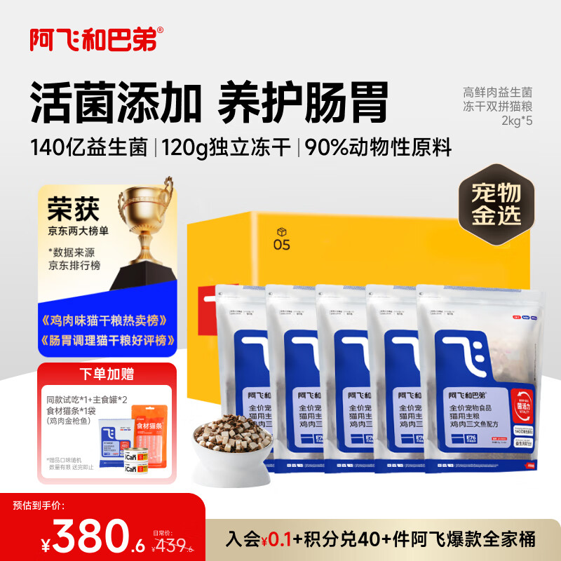 阿飞和巴弟猫粮E76益生菌全价冻干双拼猫粮成猫粮2kg*5袋装10kg【宠物金选】
