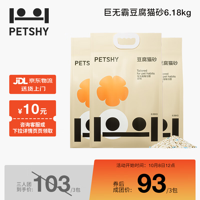 petshy百宠千爱 超大规格豆腐猫砂6.18kg*3袋囤货装 万人团