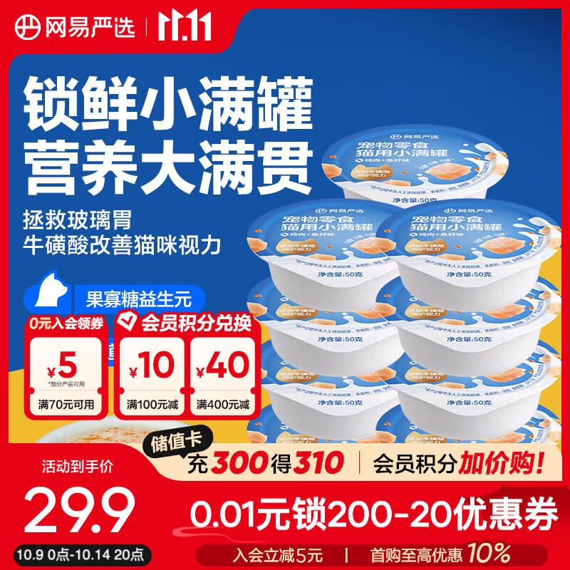 网易严选猫用小满罐宠物零食罐头美毛补水增肥猫罐头湿粮营养罐头 鸡肉+鱼籽味 50g*12罐