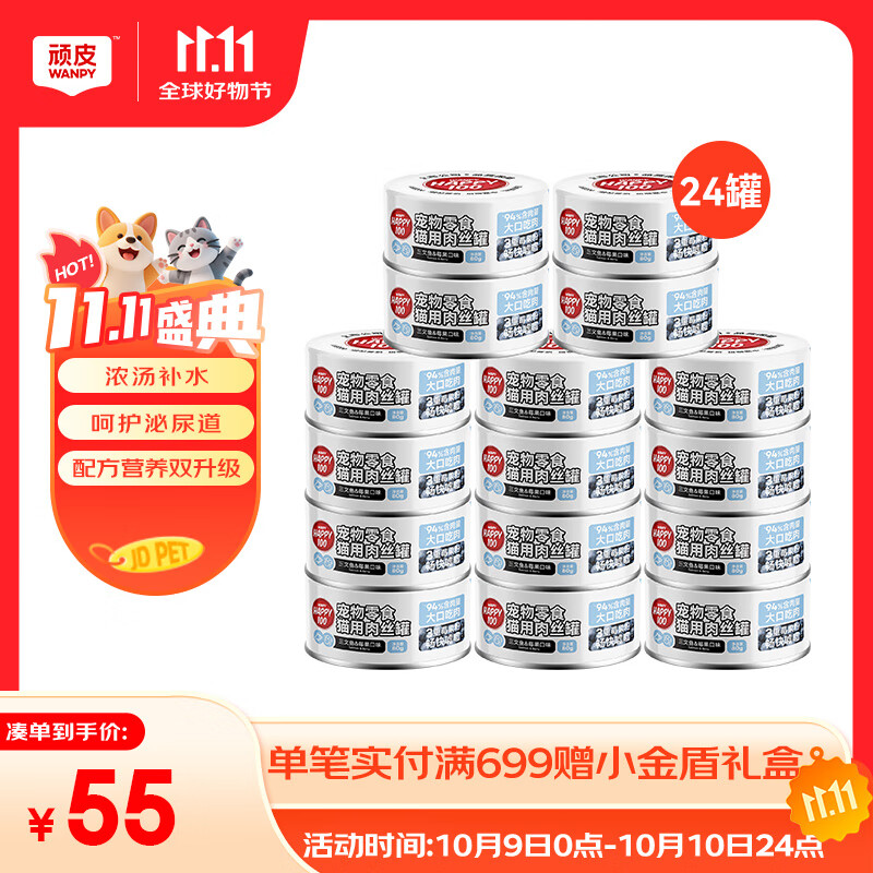 顽皮(Wanpy)三文鱼猫罐头80g*24罐(汤汁型)出口级 猫咪零食happy100果饭儿