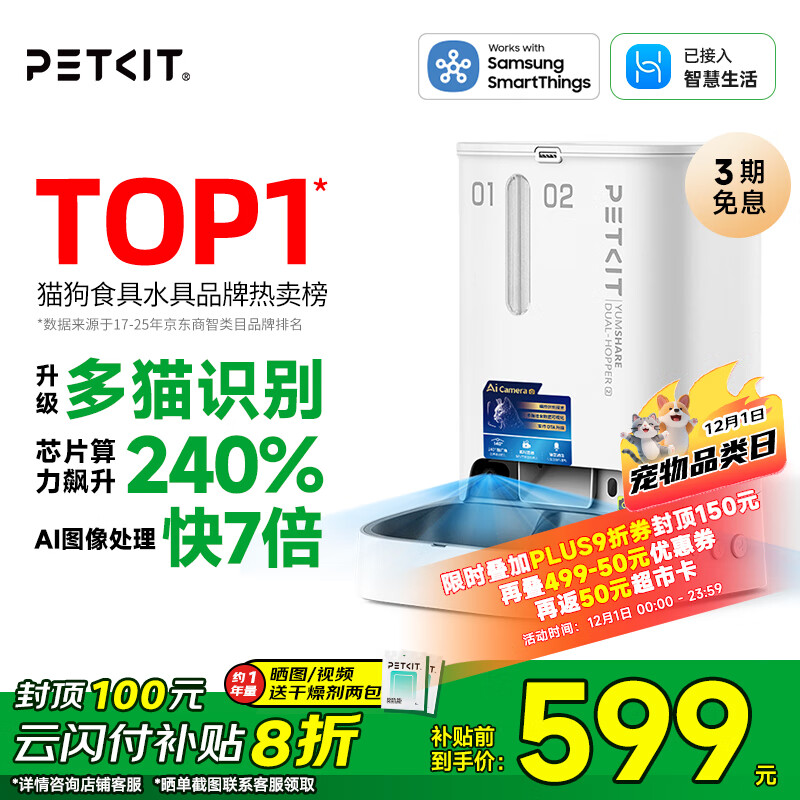 小佩AI宠物智能自动双子星喂食器可视版 定时定量 实时视频监控