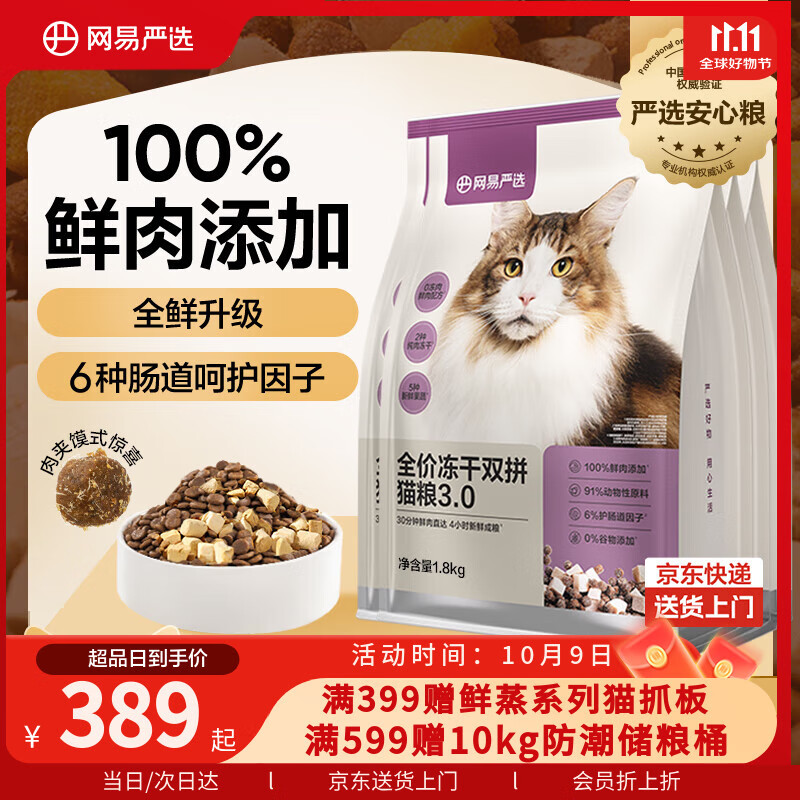 网易严选全价冻干双拼猫粮3.0升级 主粮成幼猫高鲜肉鸡鸭无谷护肠胃7.2kg